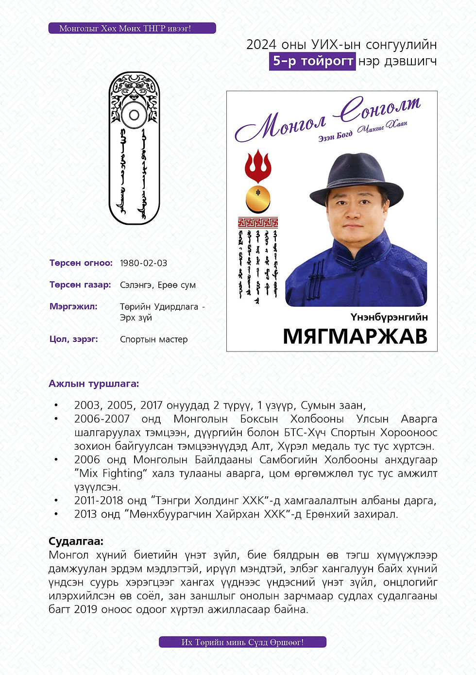 Тойрогт нэр дэвшигчдийн дэлгэрэнгүй танилцуулга